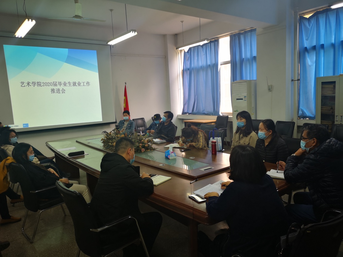 就业秘书韩冰老师汇报了截至3月20日、4月15日艺术公司2020届毕业生的就业率及院系排名。并向大家传达了就业指导中心系列通知的精神和全员参与毕业生就业台账表格的填写要求。